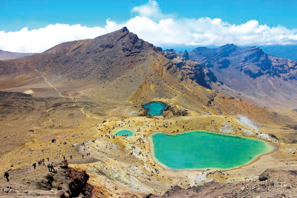 温泉とマオリ文化の街、ロトルアへ(約2,5時間)。午後、タラウェラ山ハイキングへ。 今から約140年前に大噴火を起こしたタラウェラ山の火口周辺を巡り、壮大な景色が楽しめるハイキングを楽しみます(徒歩約4.5時間)。