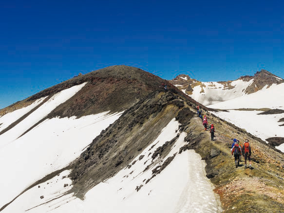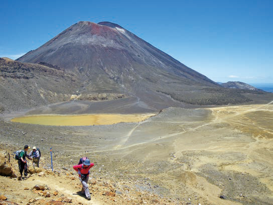 ルアペフ山麓北側のマンガテポポ登山口へ。 マンガテポポ登山口よりスタートし、荒涼とした溶岩台地や月世界を思わせるクレーターを巡り、色鮮やかな湖、原生林など、火山地帯のさまざまな景観を存分に満喫できるコースを歩きます(徒歩約9時間)。
