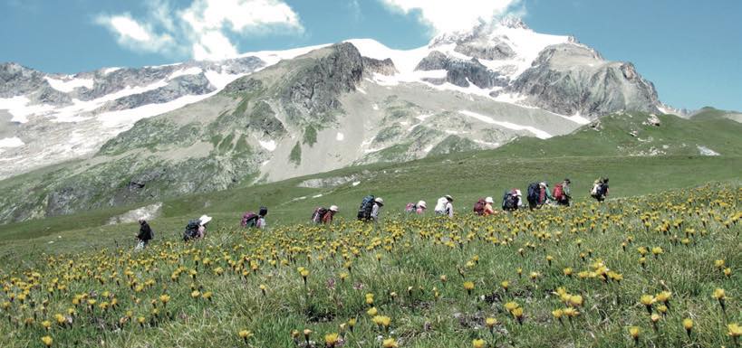 向きのコースです。迫力の氷河、お花畑、雄大な名峰など変化