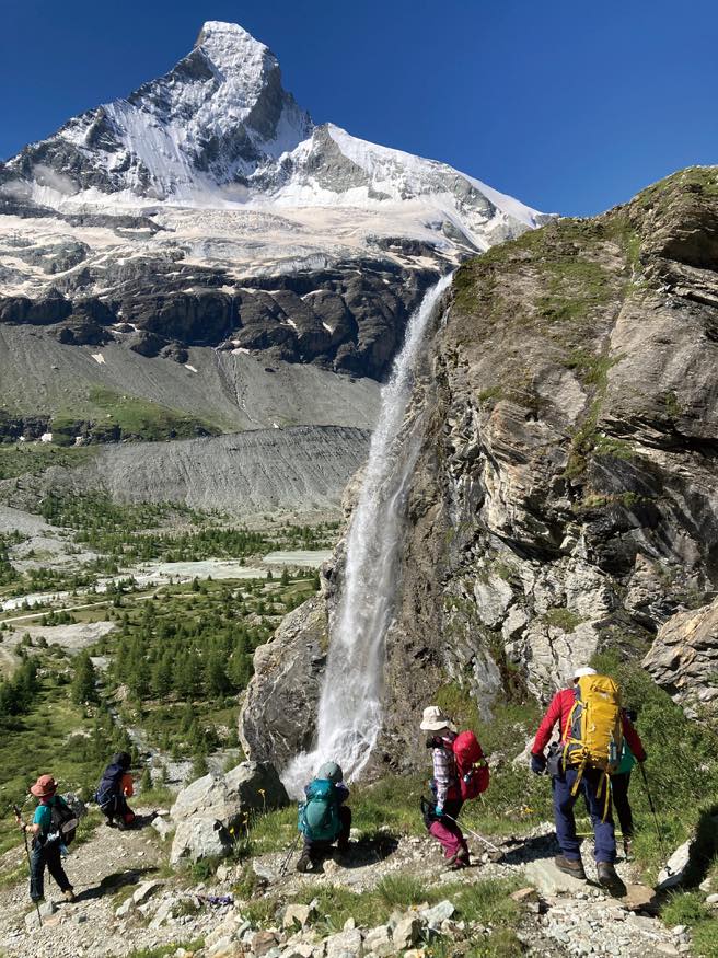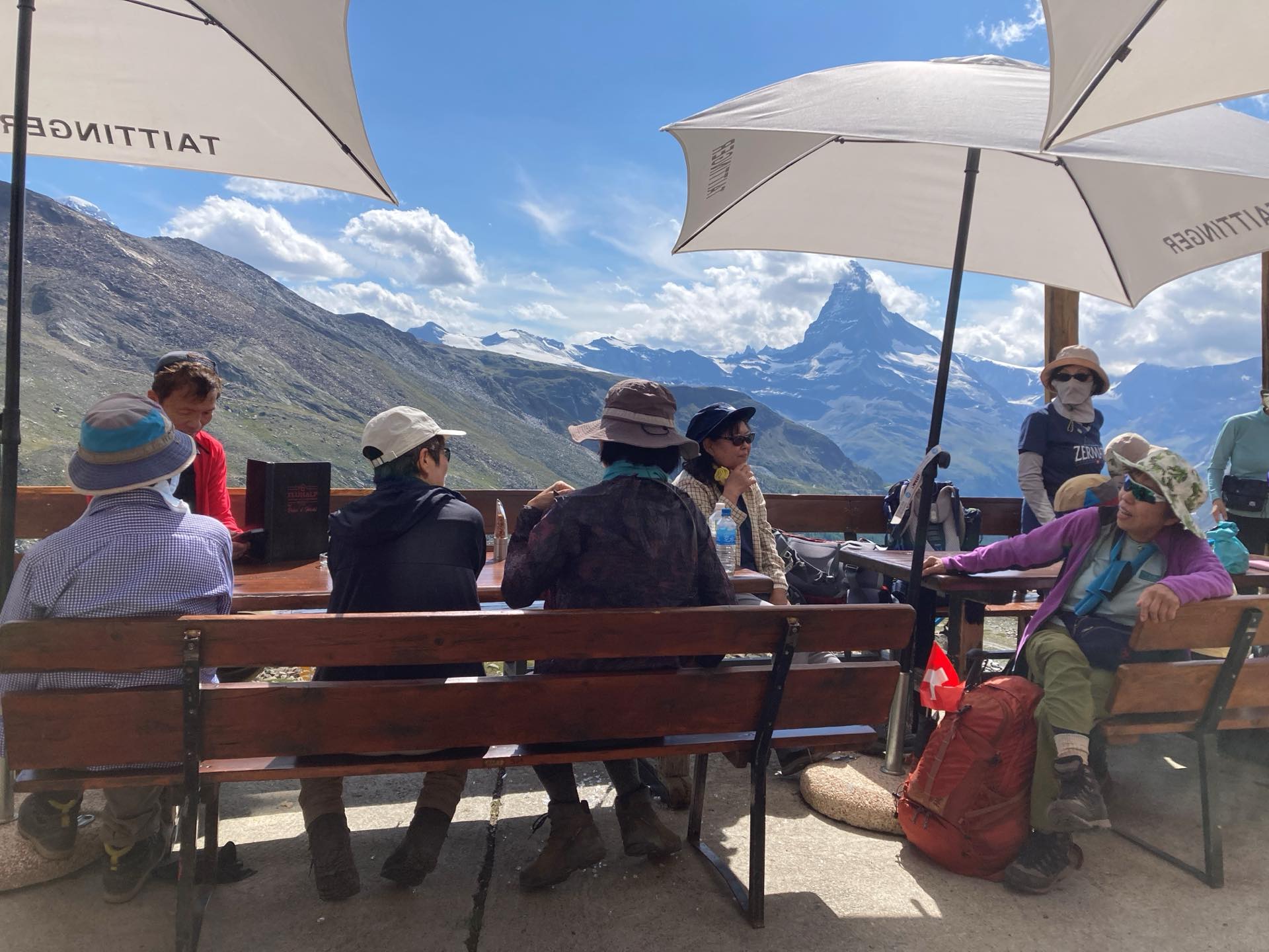 美しい山々の景色を眺めながら、グリュッチアルプ(1,486m)まで下りのハイキング(徒歩約3.5時間)。ロープウェイと列車を乗り継ぎツェルマット(1,620m)へ(約3時間、乗り換え4回)。