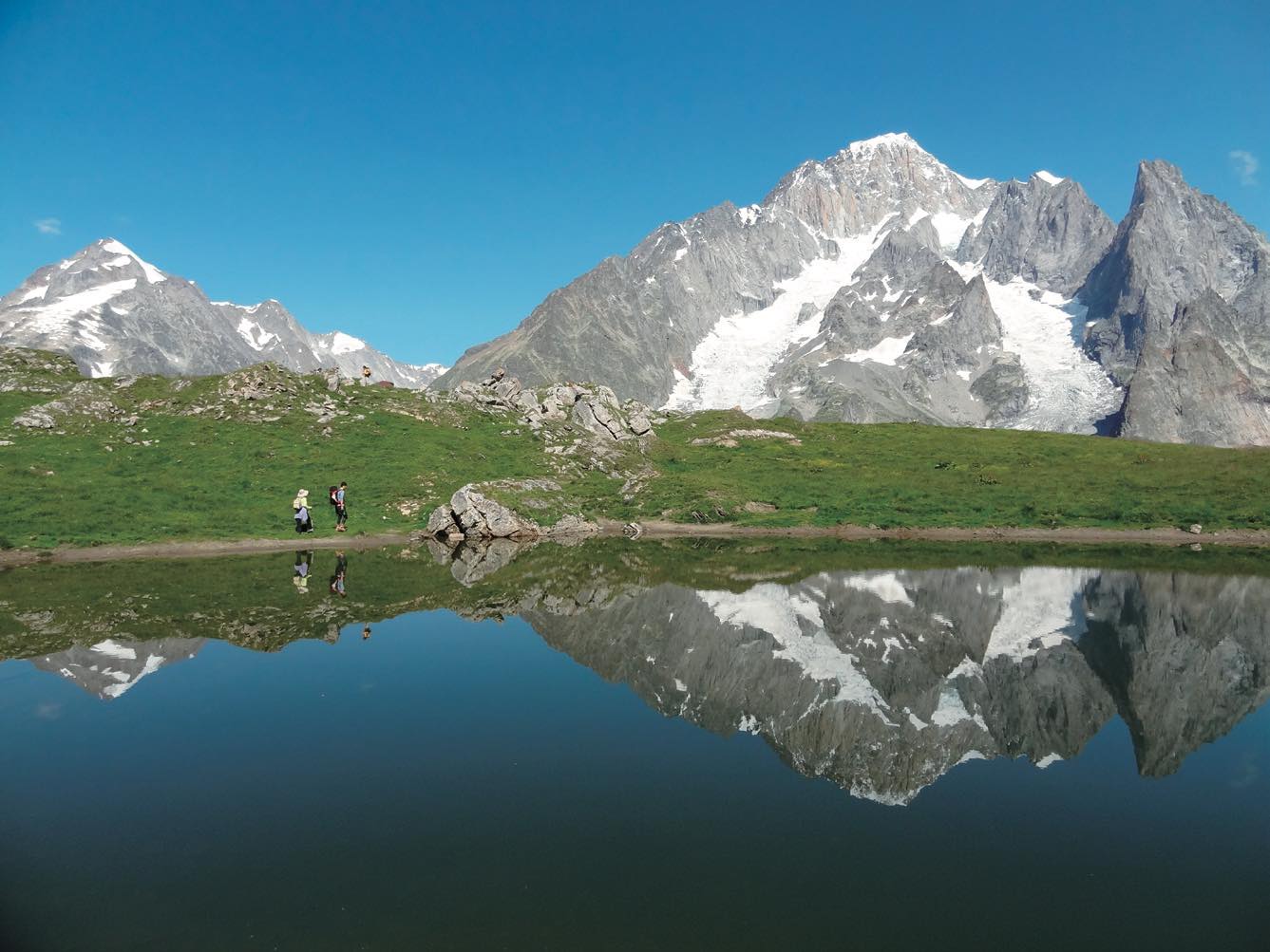 急斜面を高度差約700mを登って、フランス/イタリア国境のセーニュのコル(2,516m)へ。モンブラン山群のイタリア側の大パノラマが開けます。その後コンバル湿原(2,000m)がらメゾン・ビエイエ小屋(1,950m)へ