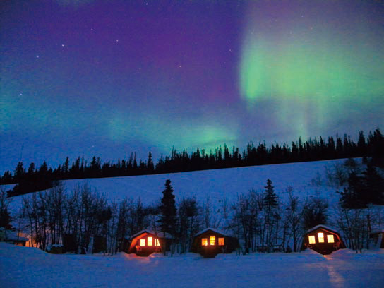 クルアニ国立公園の周辺に建つロッジを貸し切って4連泊します。ロッジの目の前には凍結したクルアニ湖が広がり、オーロラ観賞に適した抜群のロケーションです。夜は、[黄]ロッジの前でオーロラ観賞のチャンス!