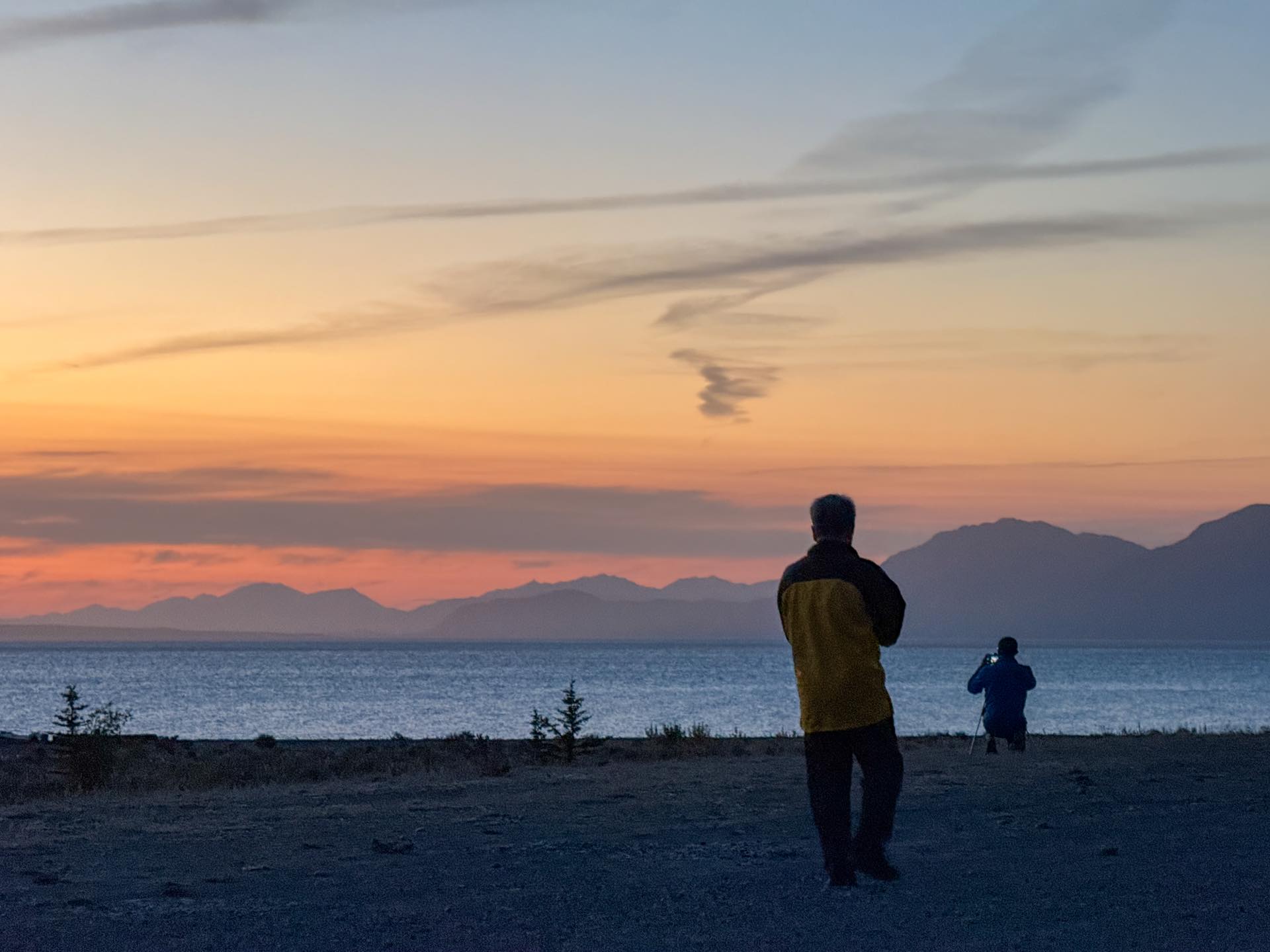 素晴らしい山岳風景と静粛さが魅力のプライベートロッジには、ダイニングやリビングルームのあるメインロッジと宿泊用のキャビンがあり、メインロッジには温水シャワーと水洗トイレも完備されています。ロッジ滞在中は、ツアーに同行する専属シェフによる手料理をお楽しみください。決して豪華絢爛ではありませんが、極北ならではの食材を使い、家庭的で心温まる食事が人気です。ロッジでは自分の部屋を一歩外に出れば、そこはオーロラ鑑賞地。いつでも好きなだけオーロラを待つこともできます。また、楽しみは夜のオーロラだけではありません。クルアニ連山が赤やピンクに染まるマジックアワーは感動的なほど美しく、その景色は見る者の心に深く刻まれることでしょう。