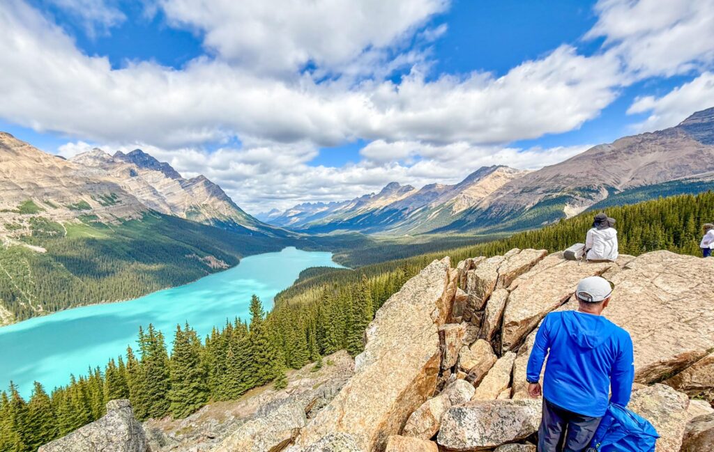 ヨーホー国立公園のタカカウの滝から歩き始め、ヨーホーバレーを望む展望地を目指します。氷河が削ったU字谷のパノラマは圧巻です(徒歩約4時間)。