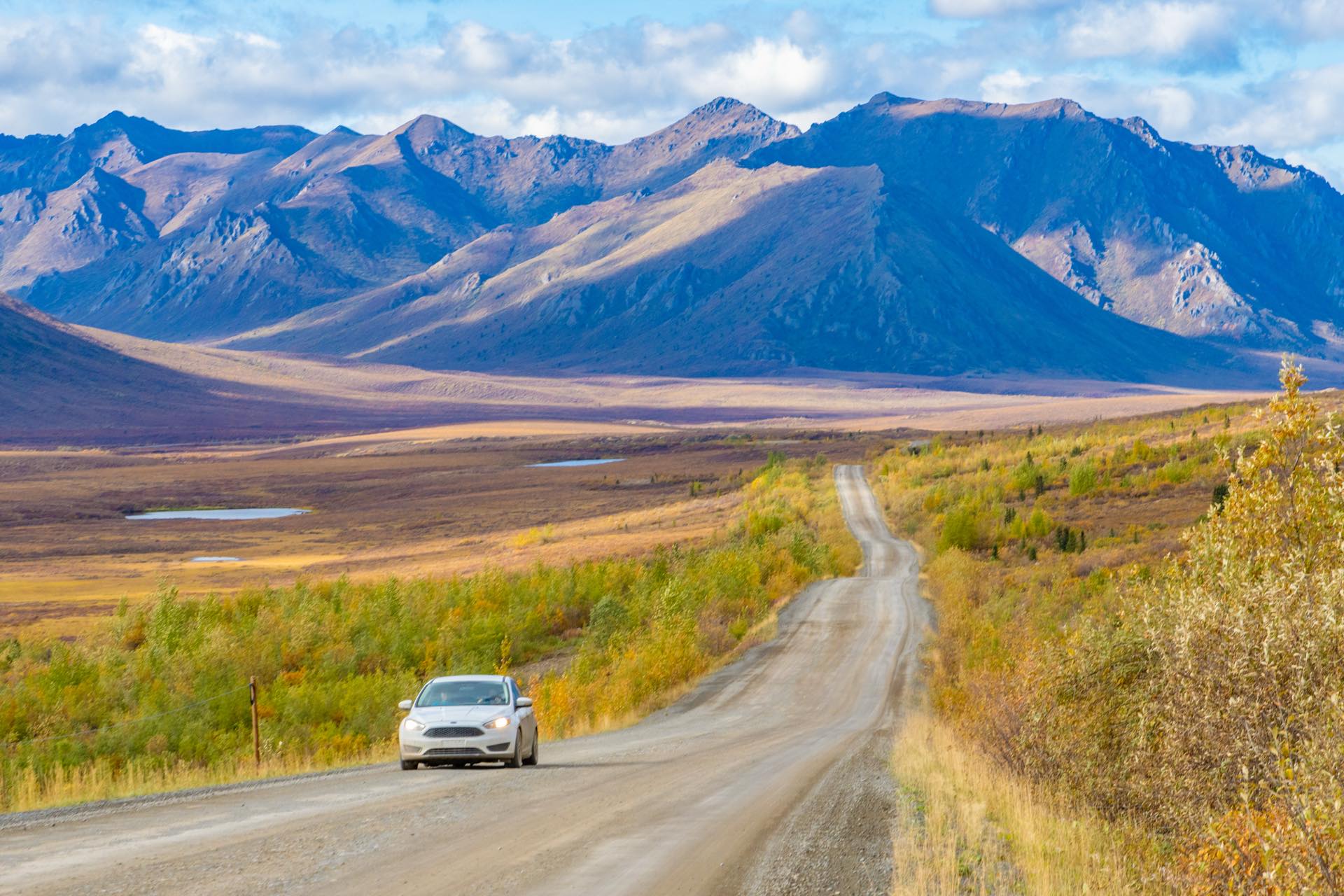 専用車でユーコン川に沿って伸びるクロンダイク・ハイウェイを北上します。景勝地に立ち寄りながら、ドライブを楽しみましょう。この日に宿泊するドーソンシティーは、ゴールドラッシュの時代に栄えた町として知られています。