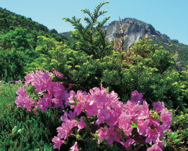 漢拏山は、韓国ではじめて世界遺産に登録された場所であり、済州島のほぼ中央にあります。標高は1,950mあり、春はツツジの群落が咲き誇ることでも知られています。