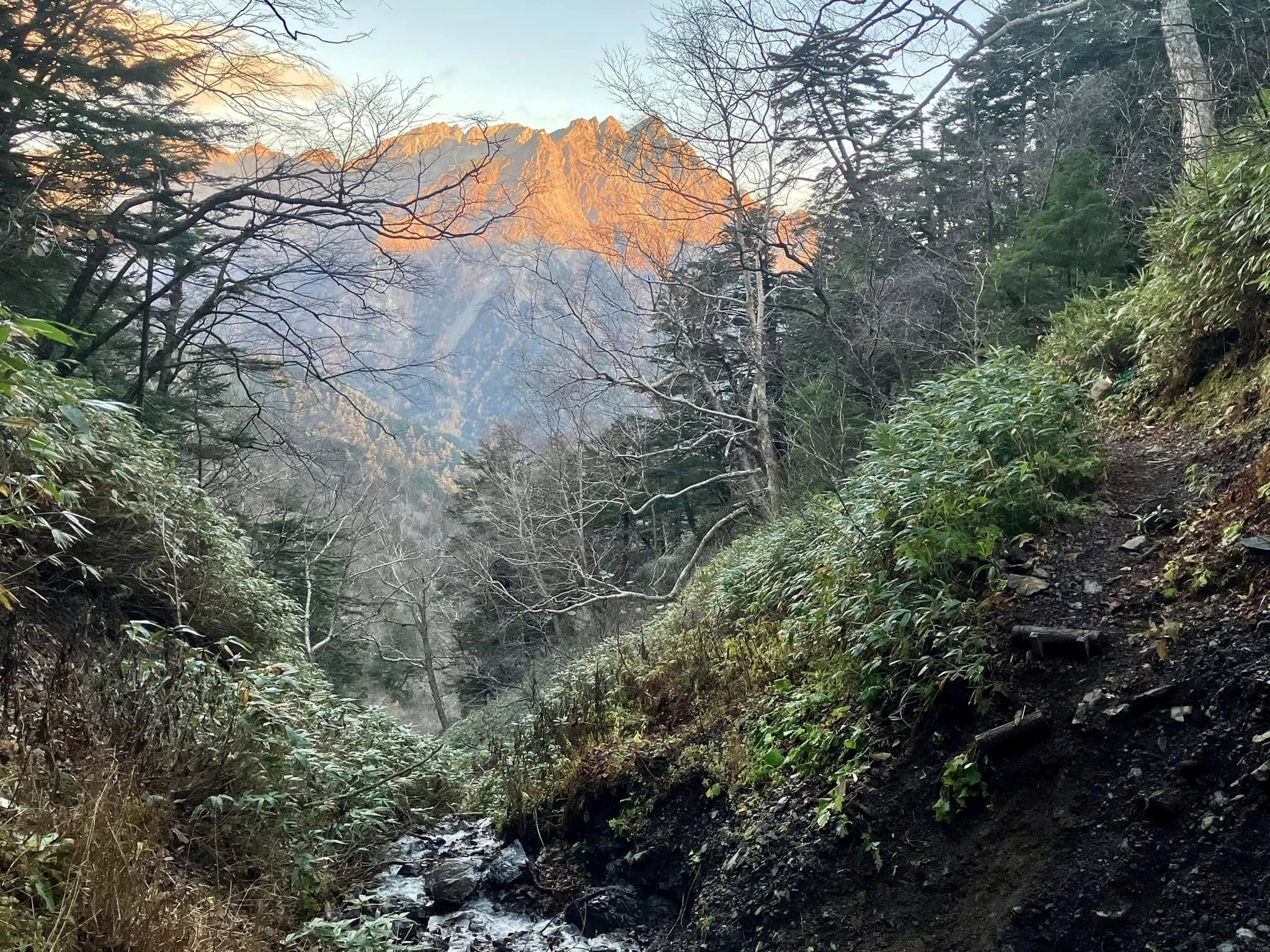 徳本峠分岐徳本峠(2135m)岩魚留小屋(約1260m)二俣広場・林道出合(約930m)島々谷島々宿(約720m)松本駅(18:00予定)