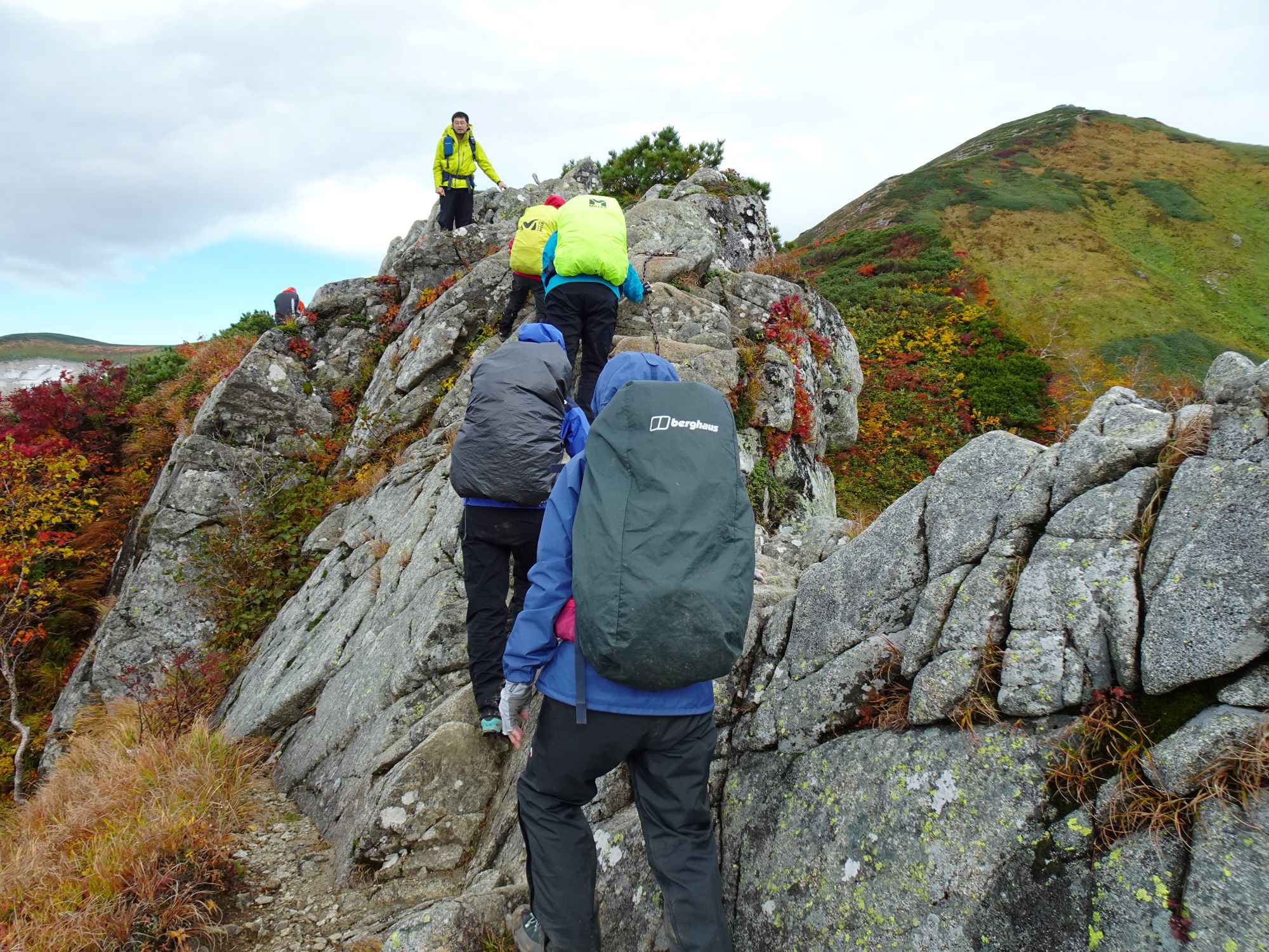 【3日目】朝食後、出発。稜線をたどり、御秘所の岩場、本山小屋を経て飯豊山に登頂します。下山は往路を切合小屋に戻ります。