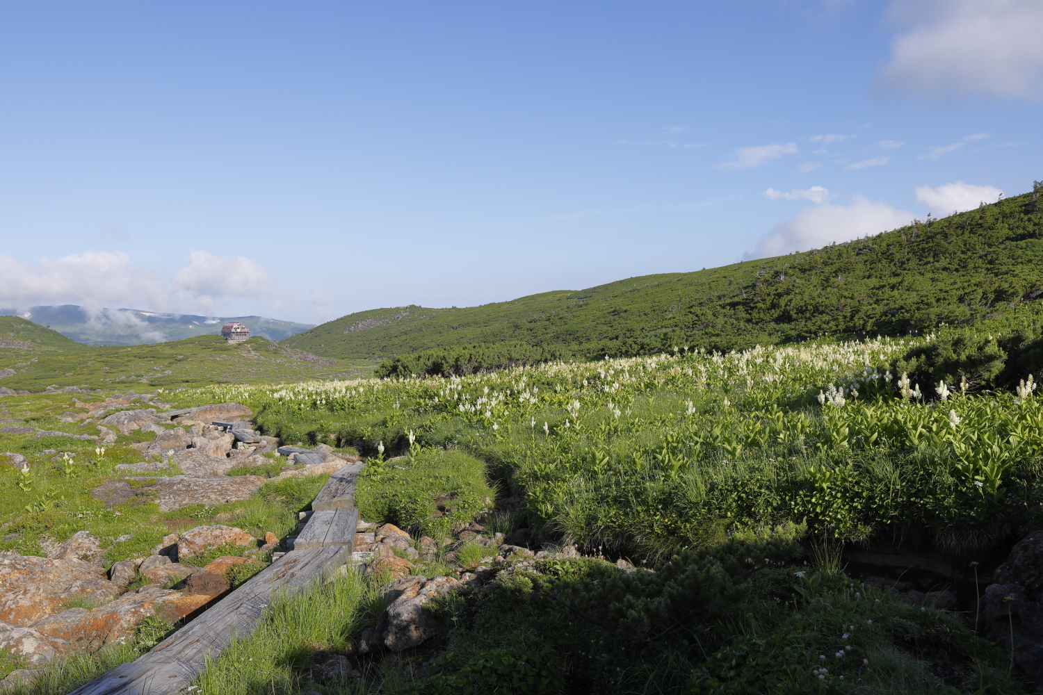 【2日目】太郎平から薬師沢へ下り、急坂を登り返して雲ノ平へ。特徴的な庭園の数々を眺めながら、北アルプスの最深部、黒部源流域にたたずむ雲ノ平山荘へ。水晶岳、薬師岳、黒部五郎岳、三俣蓮華岳などの山々が雲ノ平を取り囲みます。途中、祖母岳を往復します。