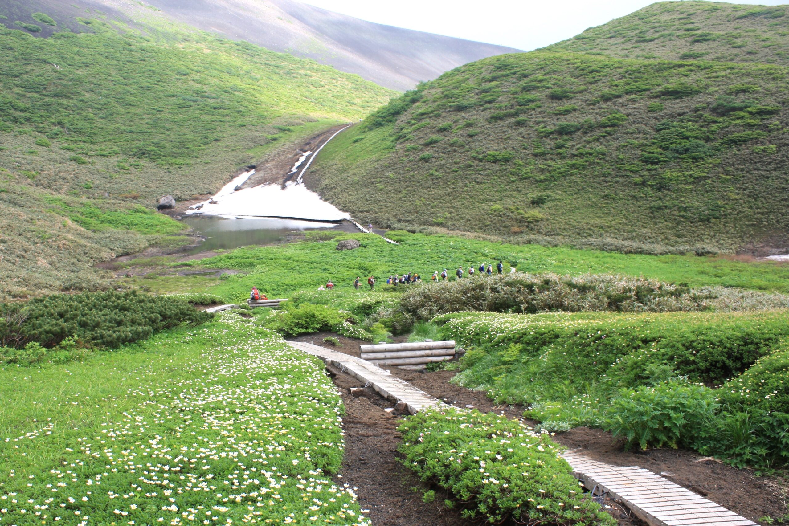 【3日目】朝、送迎車で秋田駒ヶ岳八合目ヘ上がります。登山準備の後、出発。よく整備された登山道を、秋田駒ヶ岳を回り込むように阿弥陀小屋へ。阿弥陀小屋から一等三角点のある秋田駒ヶ岳を往復したあと、高山植物のお花畑が広がる馬場ノ小路(通称ムーミン谷)に下っていきます。馬場ノ小路からコマクサが咲く横長根の尾根道に上がり、国見温泉に下山します。下山時間により国見温泉で入浴したあと、専用車で盛岡へ。盛岡駅到着後、解散します。
