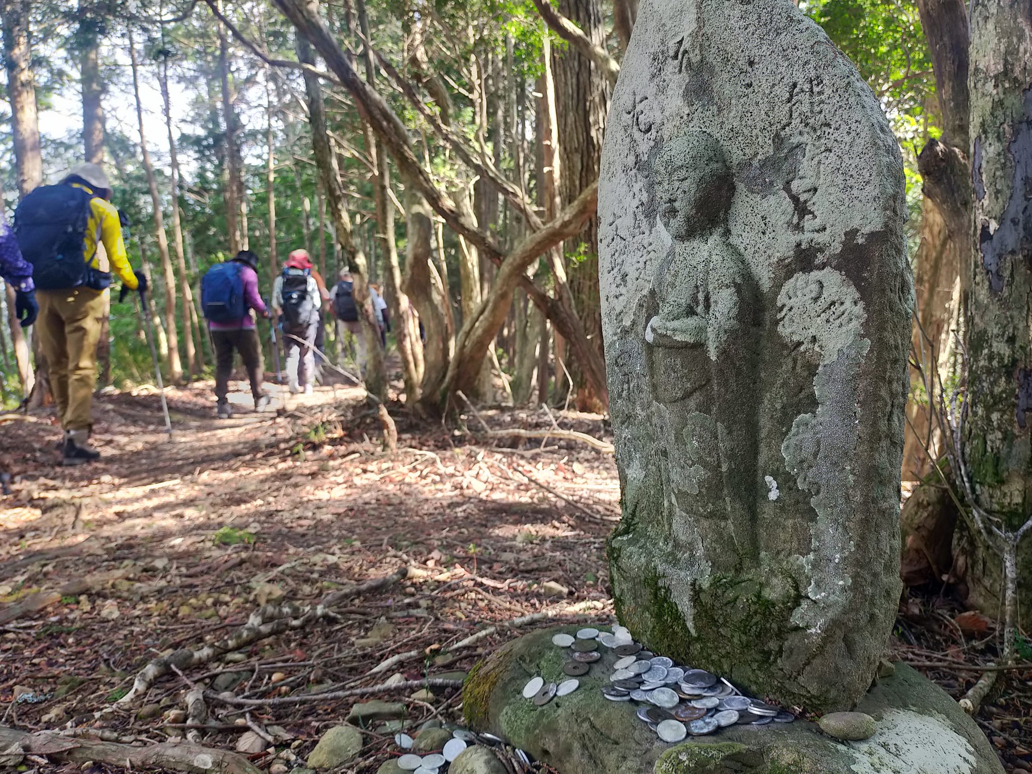 かつての熊野詣の道には、石畳、道標、石仏、茶屋跡などが点在し、古の面影を感じながら約70㎞を熊野本宮大社まで完全踏破します。