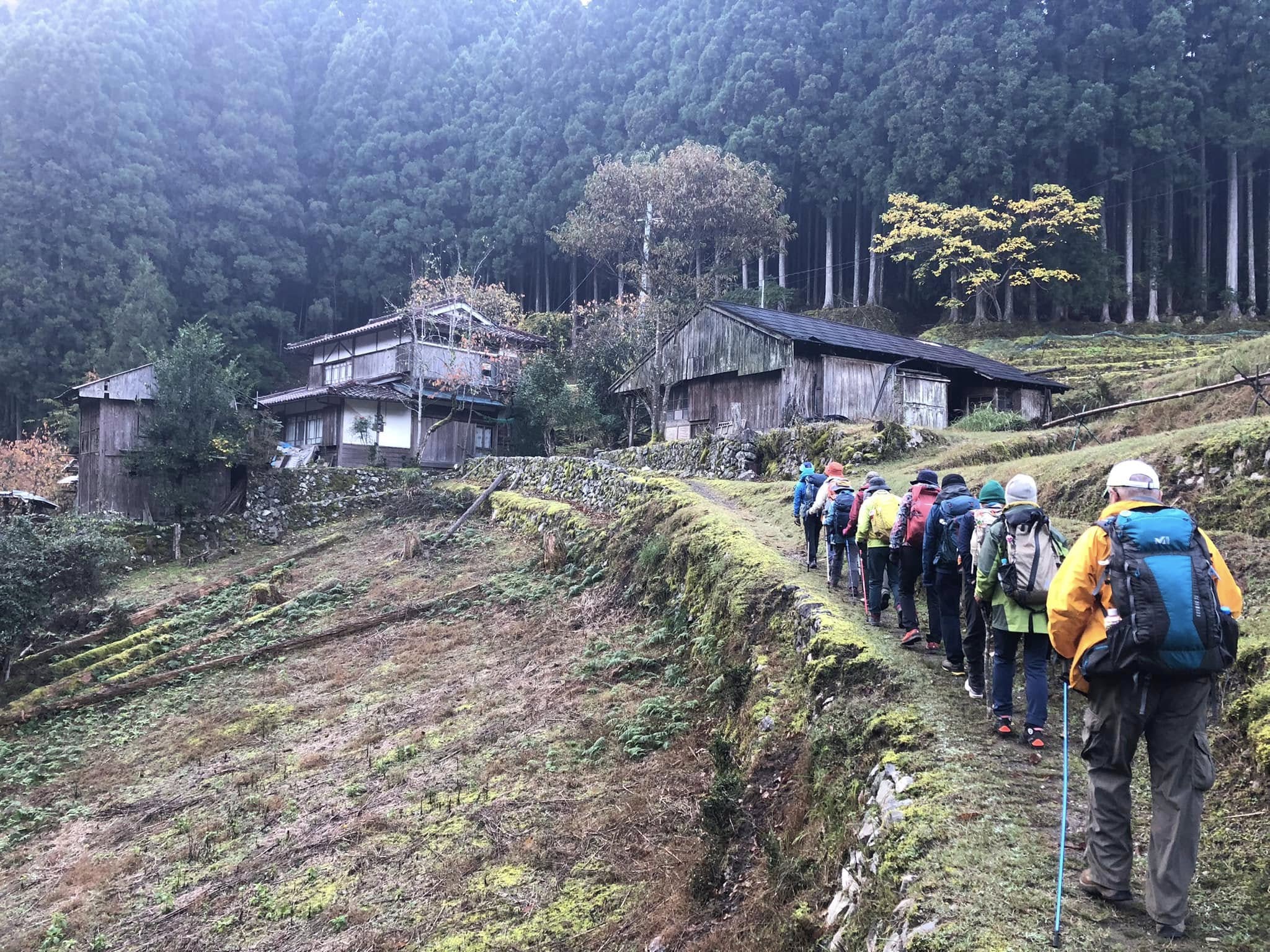 【4日目】美しい三浦の棚田、樹齢500年を数える大杉がある吉村家跡を抜け、三浦峠に登ります。長い下りを経て西中に下り立ち、舗装路を歩いて十津川温泉へ。