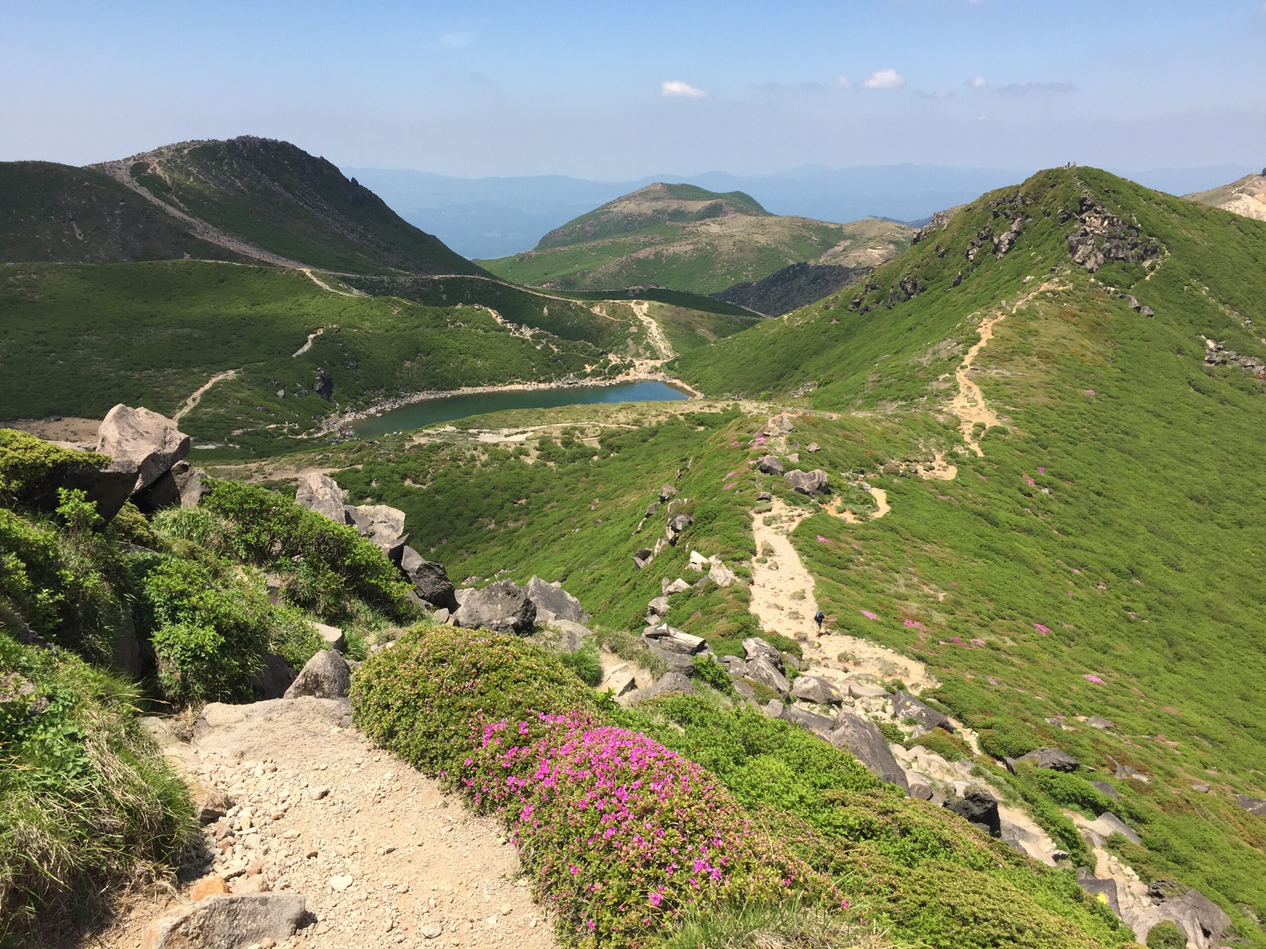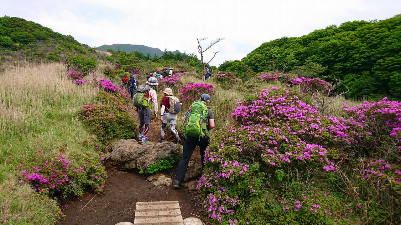 ミヤマキリシマが咲く九重連山と阿蘇山に、地元ガイド同行で登ります。