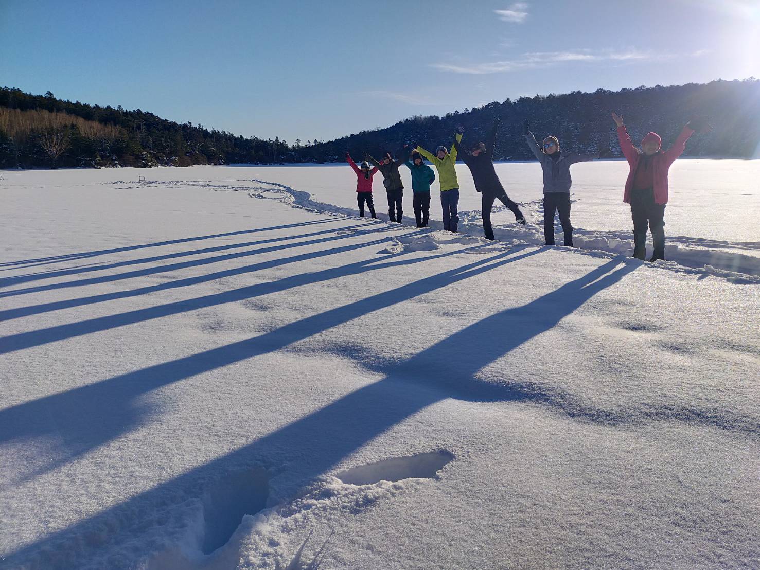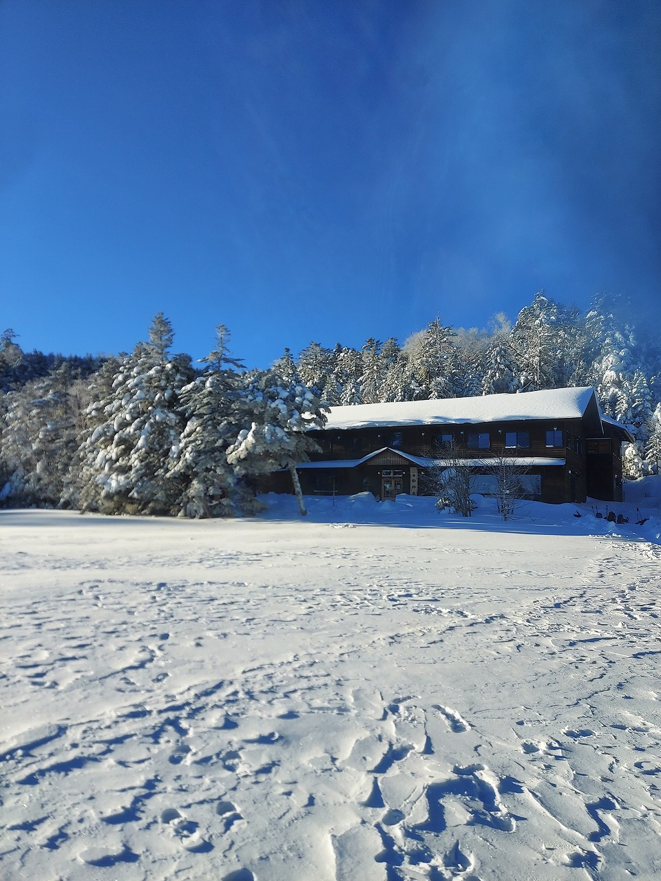 雪の白駒池のほとりに佇む快適な白駒荘に泊まって、シラビソの森を歩きます。
