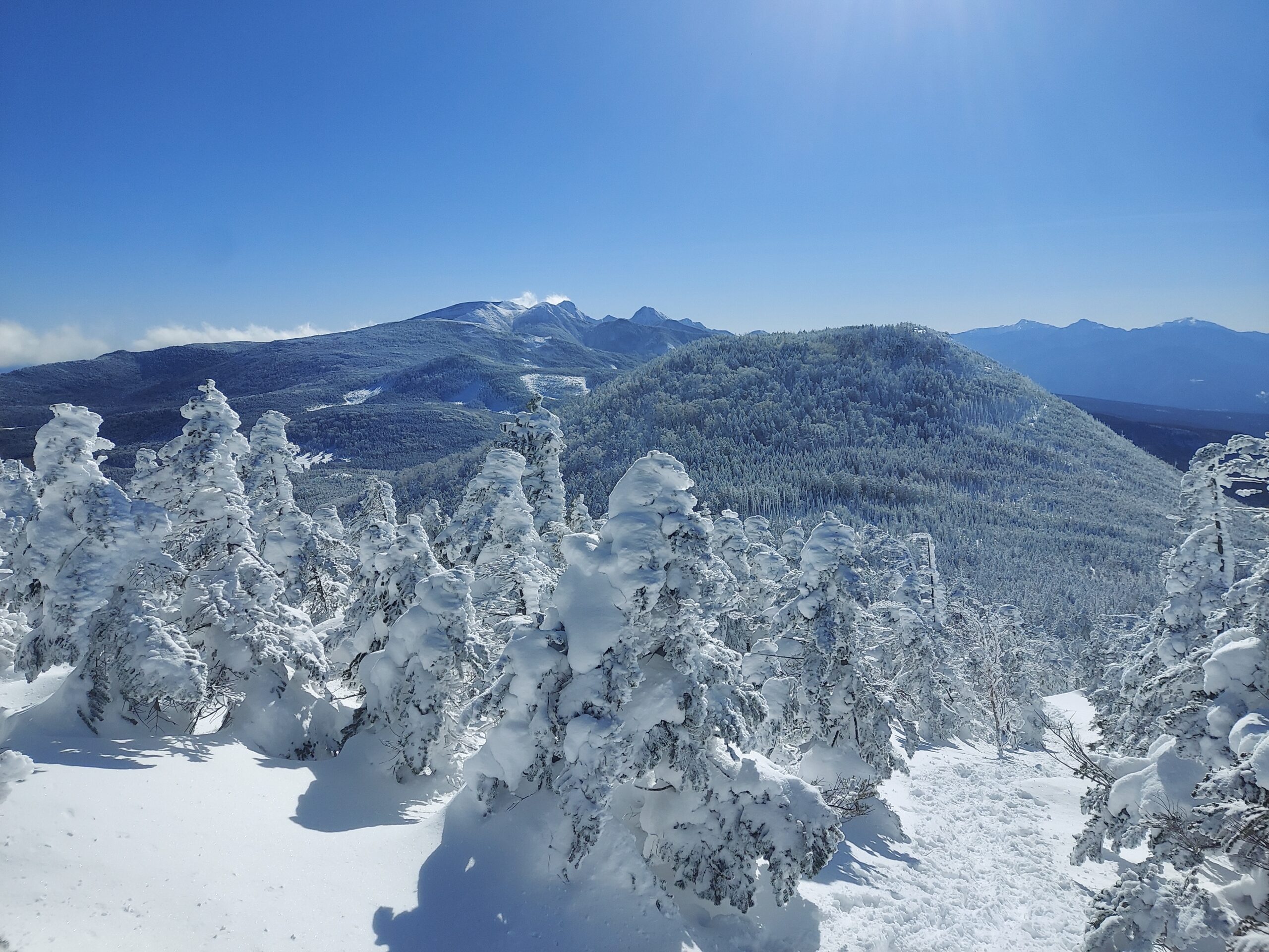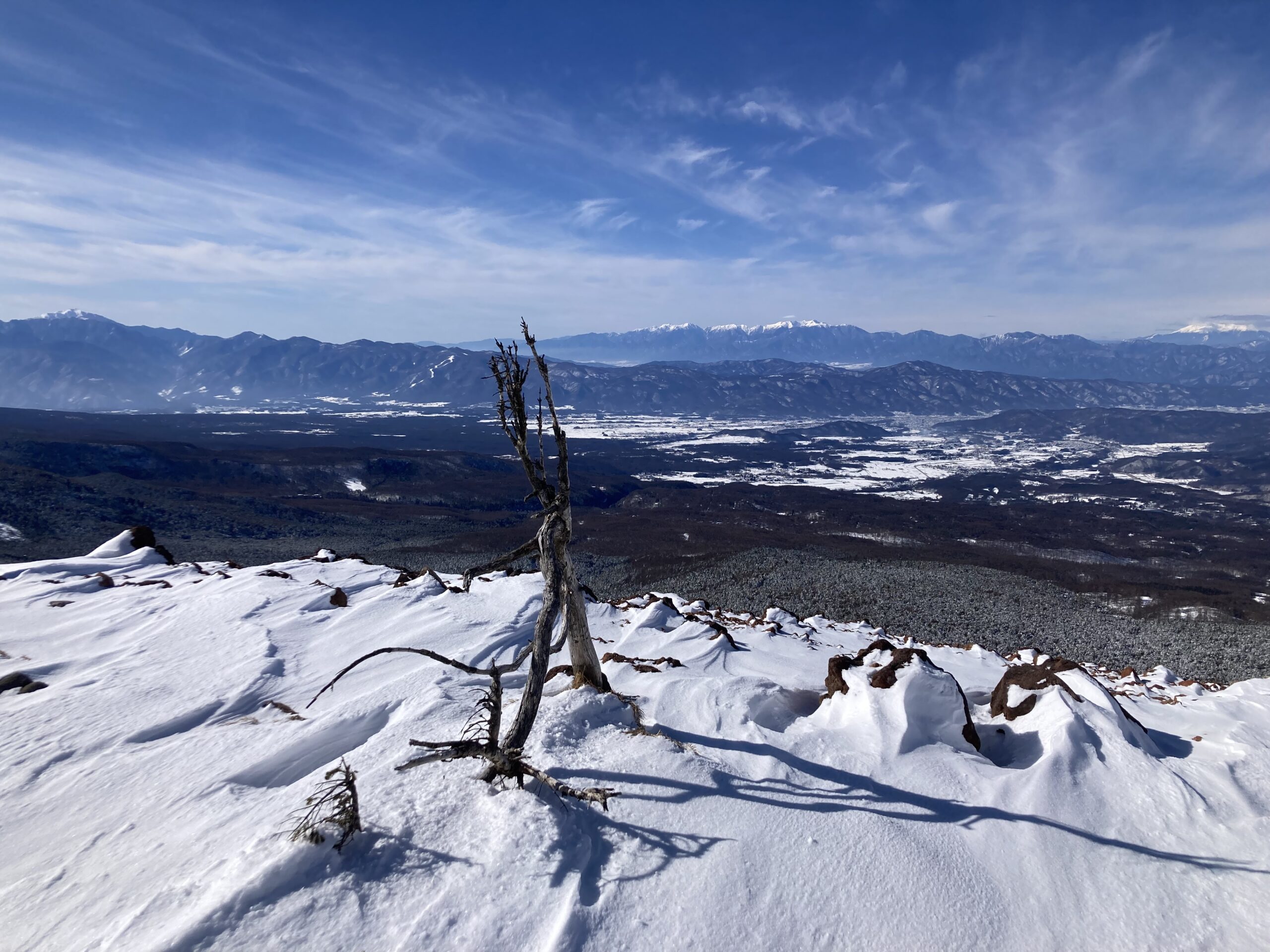 稜線からは雪化粧した八ヶ岳やアルプスの山々の大展望が広がり、雪山初心者の方にもお勧めのコースです。