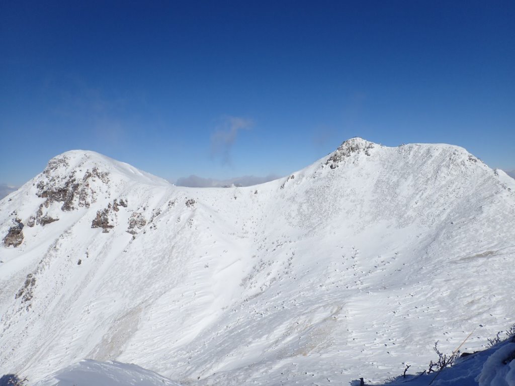 森林限界を超えた雪稜を登り、根石岳を越えて東天狗岳の山へ。さらに西天狗岳まで足を伸ばします。