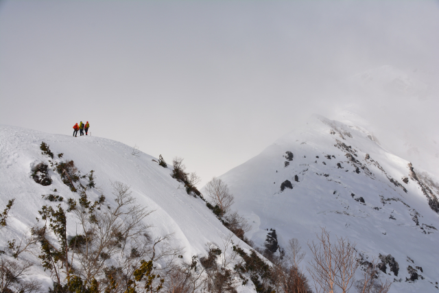 急峻な雪尾根から上越国境の豪雪ピークへ