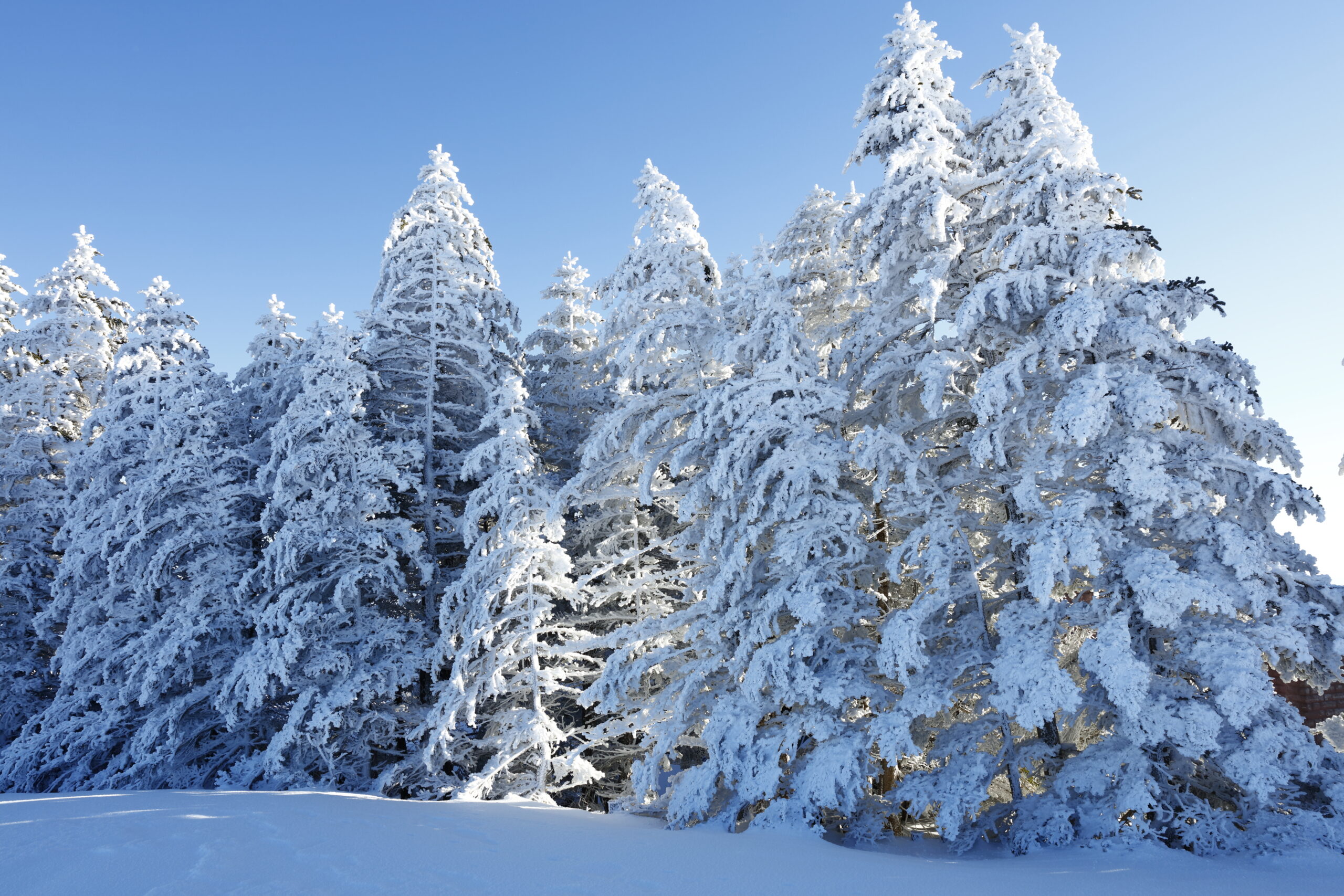 スノーシューまたはワカン、チェーンスパイクまたは6本爪軽アイゼン、ダブルストック、登山靴(剛性が高い3シーズン登山靴または冬山用登山靴)、ザック、冬用手袋、透湿性素材のレインウェアまたは冬用アウターシェル、防寒着など