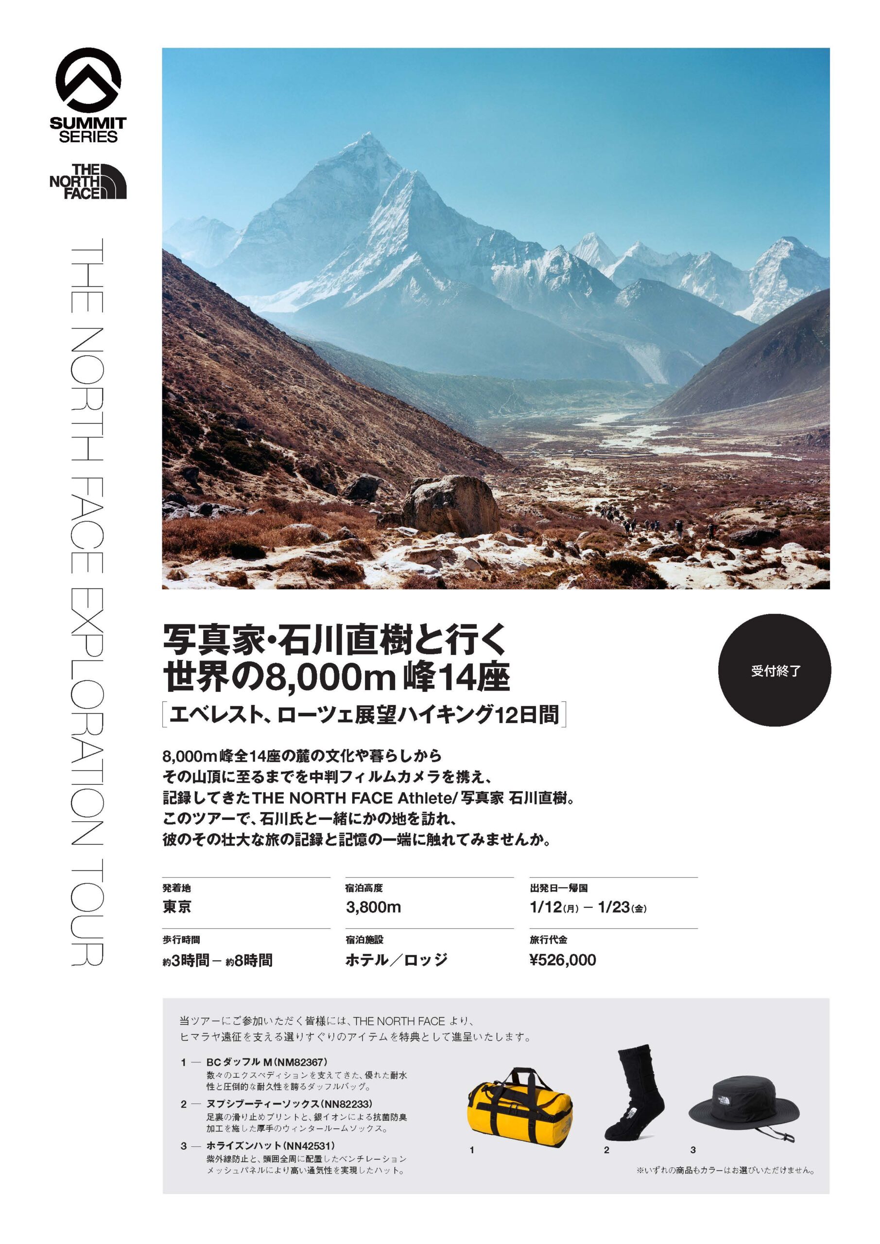 【THE NORTH FACE EXPLORATION TOUR】写真家・石川直樹と行く世界の8,000m14座 エベレスト、ローツェ展望ハイキング