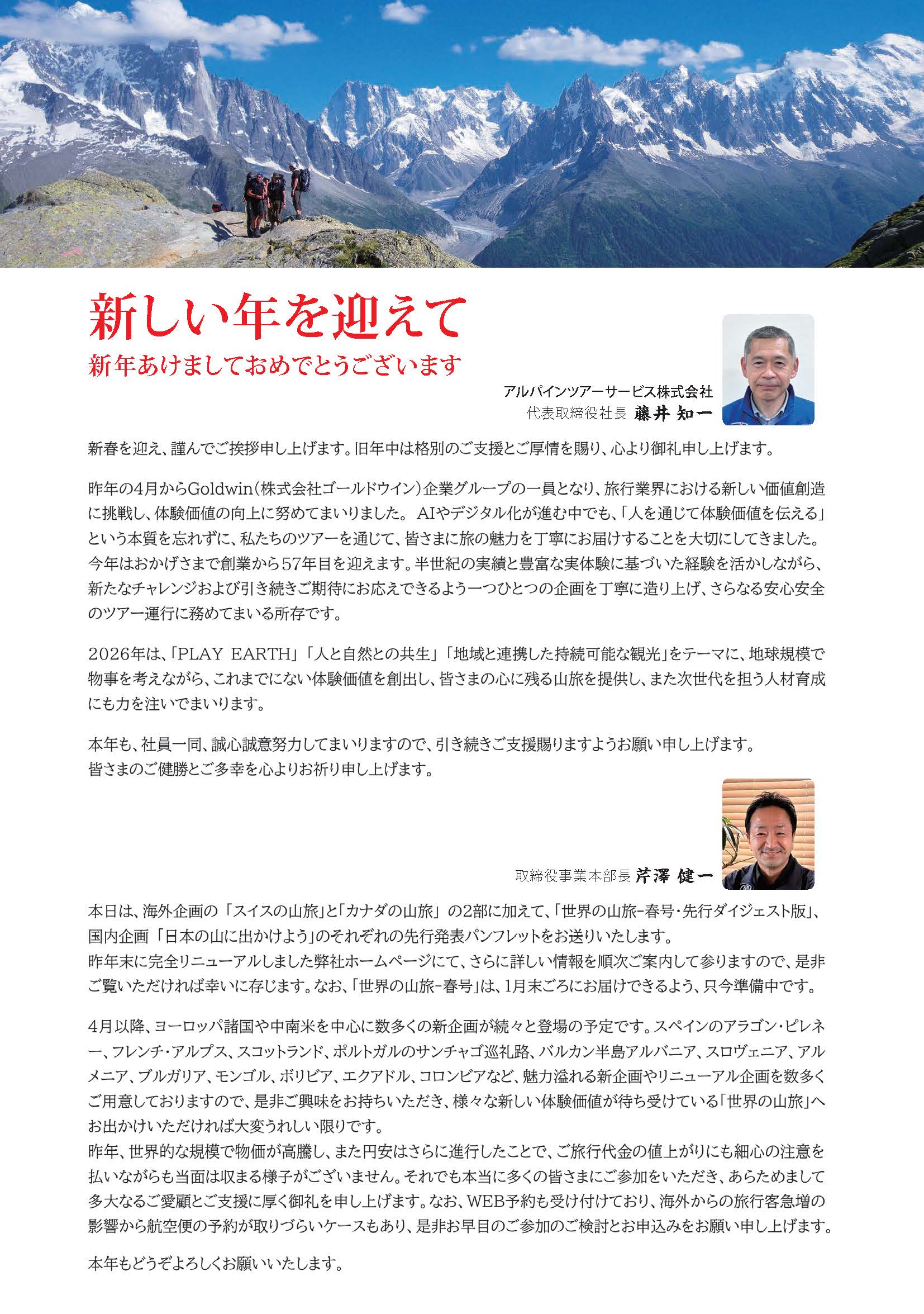 新春を迎え、謹んでご挨拶申し上げます。旧年中は格別のご支援とご厚意を賜り、心より御礼申し上げます。