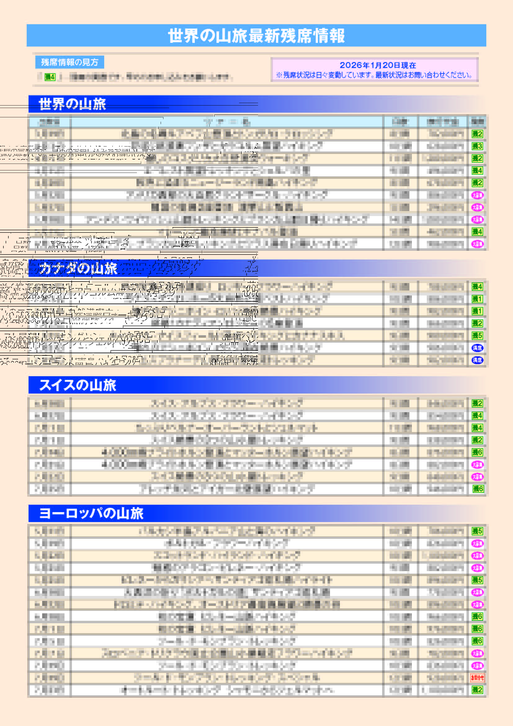 世界の山旅 最新残席情報