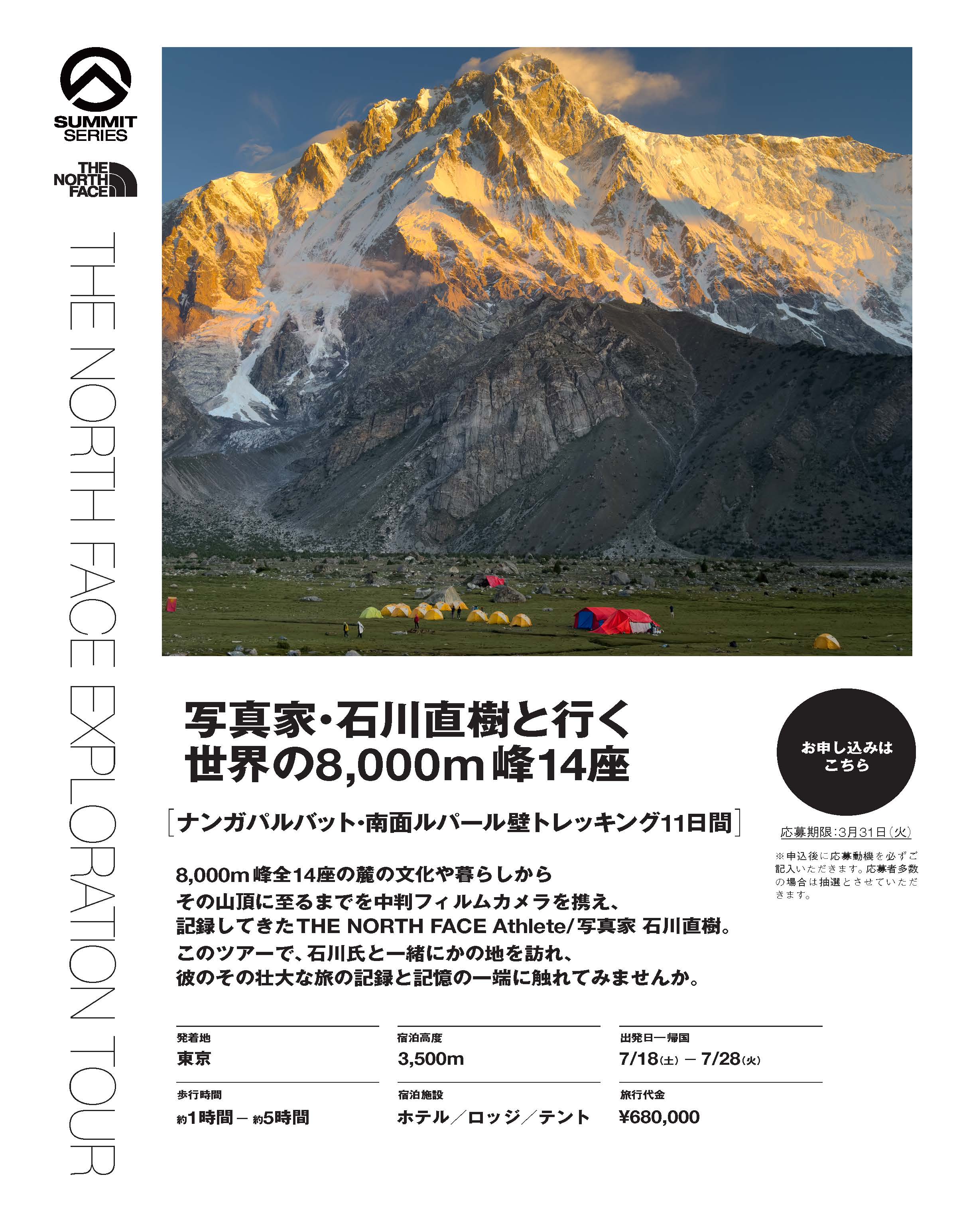 THE NORTH FACE EXPLORATION TOUR 第二弾 写真家・石川直樹と行く世界の8,000m峰14座 『ナンガパルバット・南面ルパール壁トレッキング 11日間』募集開始のお知らせ