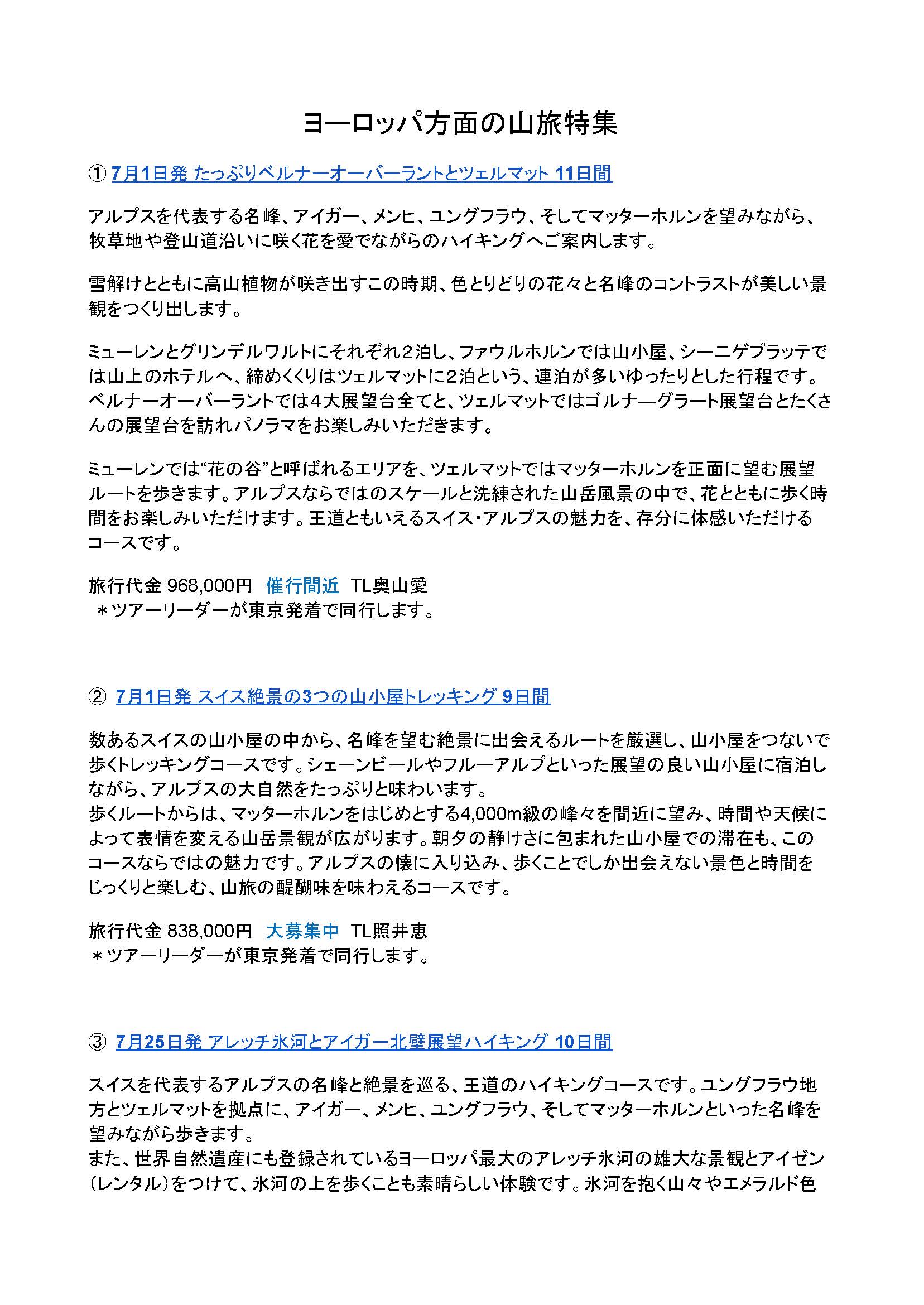 ヨーロッパ方面の山旅特集